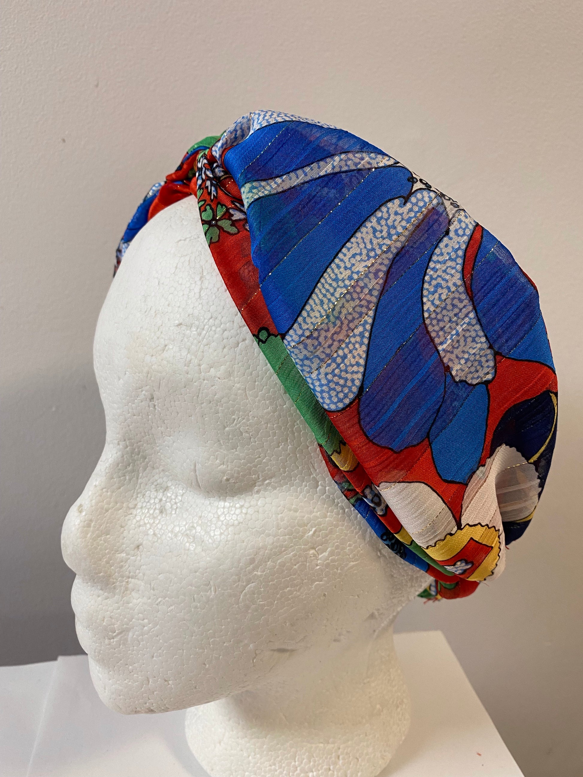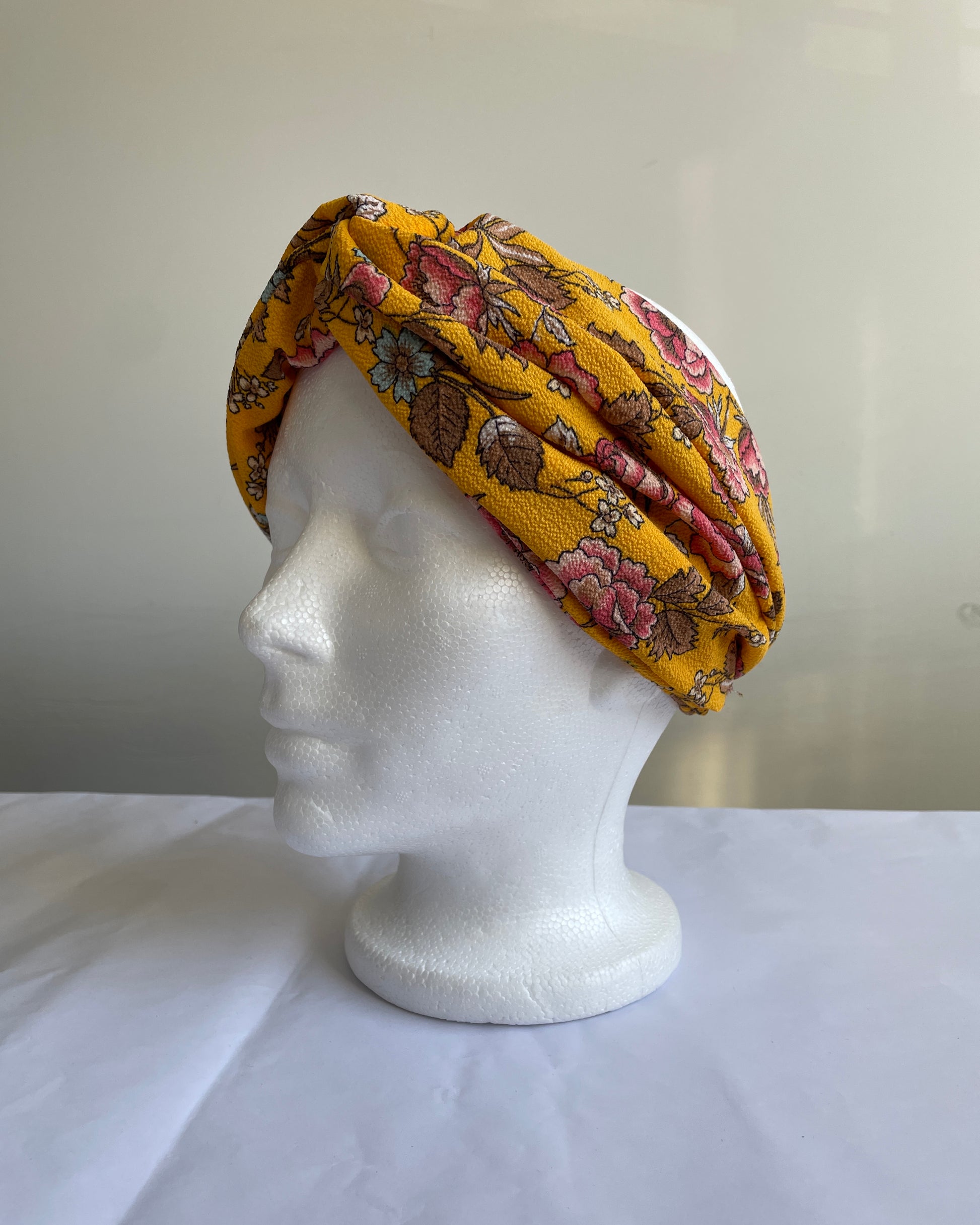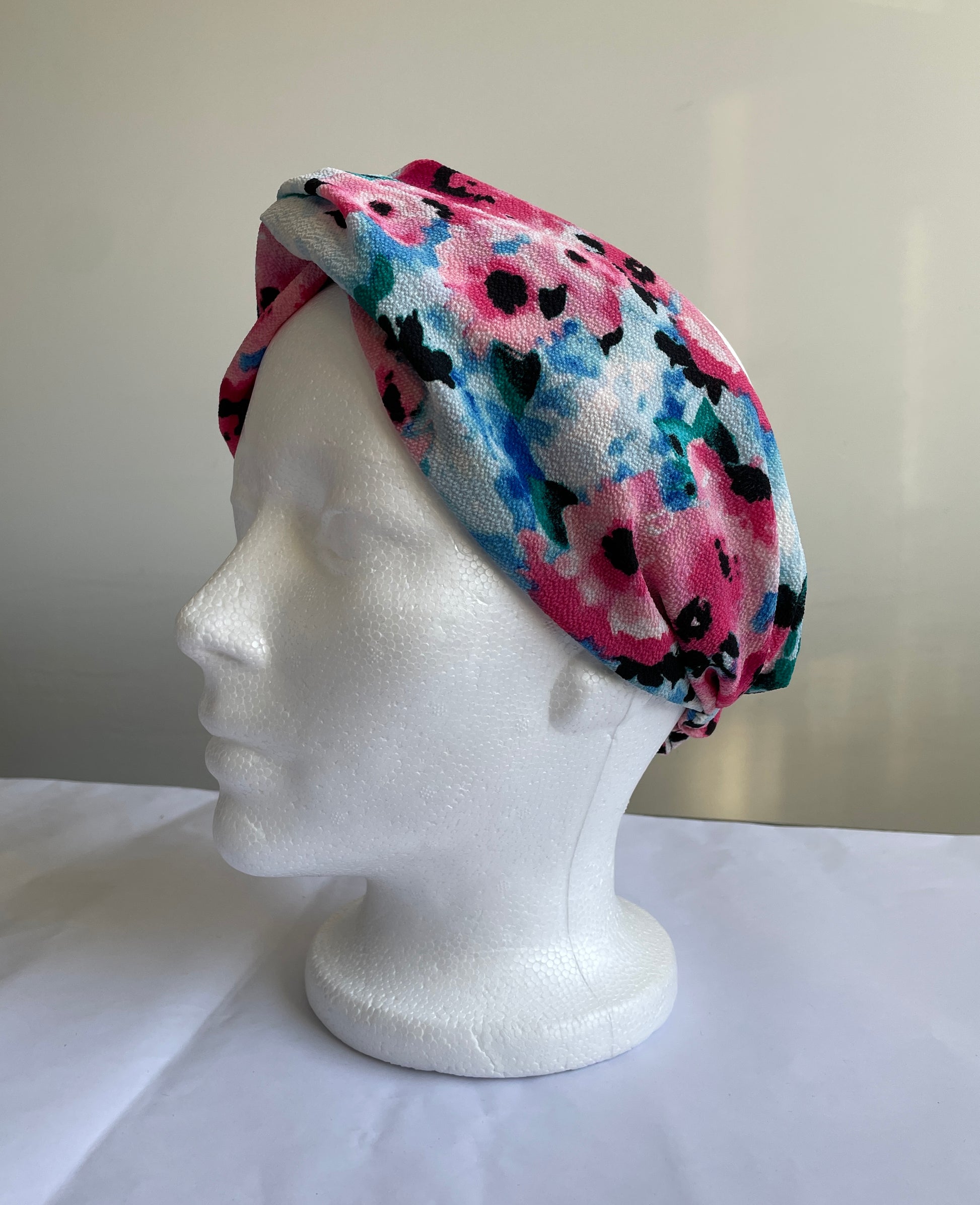 Bandeau pour cheveux avec noeud et ampleur sur le dessus et élastique au niveau de la nuque.