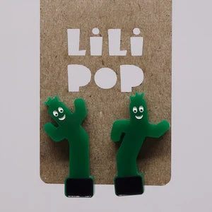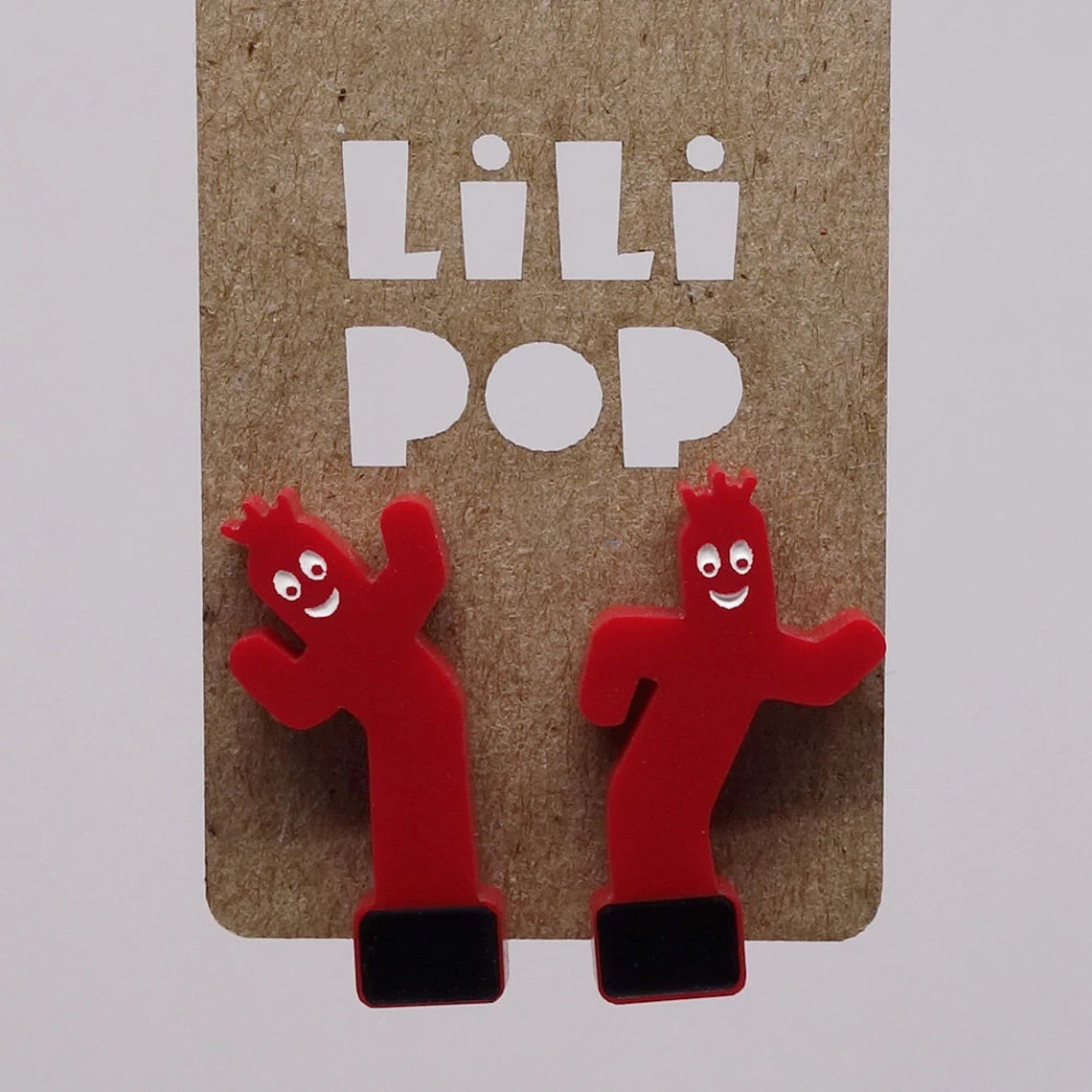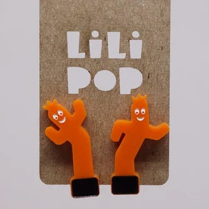 Boucles d'oreilles fabriquées à partir de plastique récupéré, gravé et découpé au laser. Remplissage à la main de peinture.