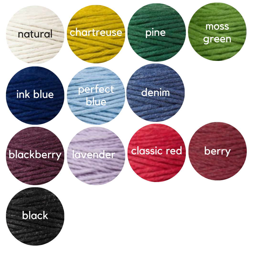 Boucles d'oreilles nouées à la main avec une corde en coton de 3 mm. La corde en coton est fabriquée à partir de matériaux recyclés et aucune teinture ou produit chimique n'est utilisé pour obtenir la couleur. Cela signifie que la couleur ne déteindra pas sur la peau et ne causera pas d'irritation.