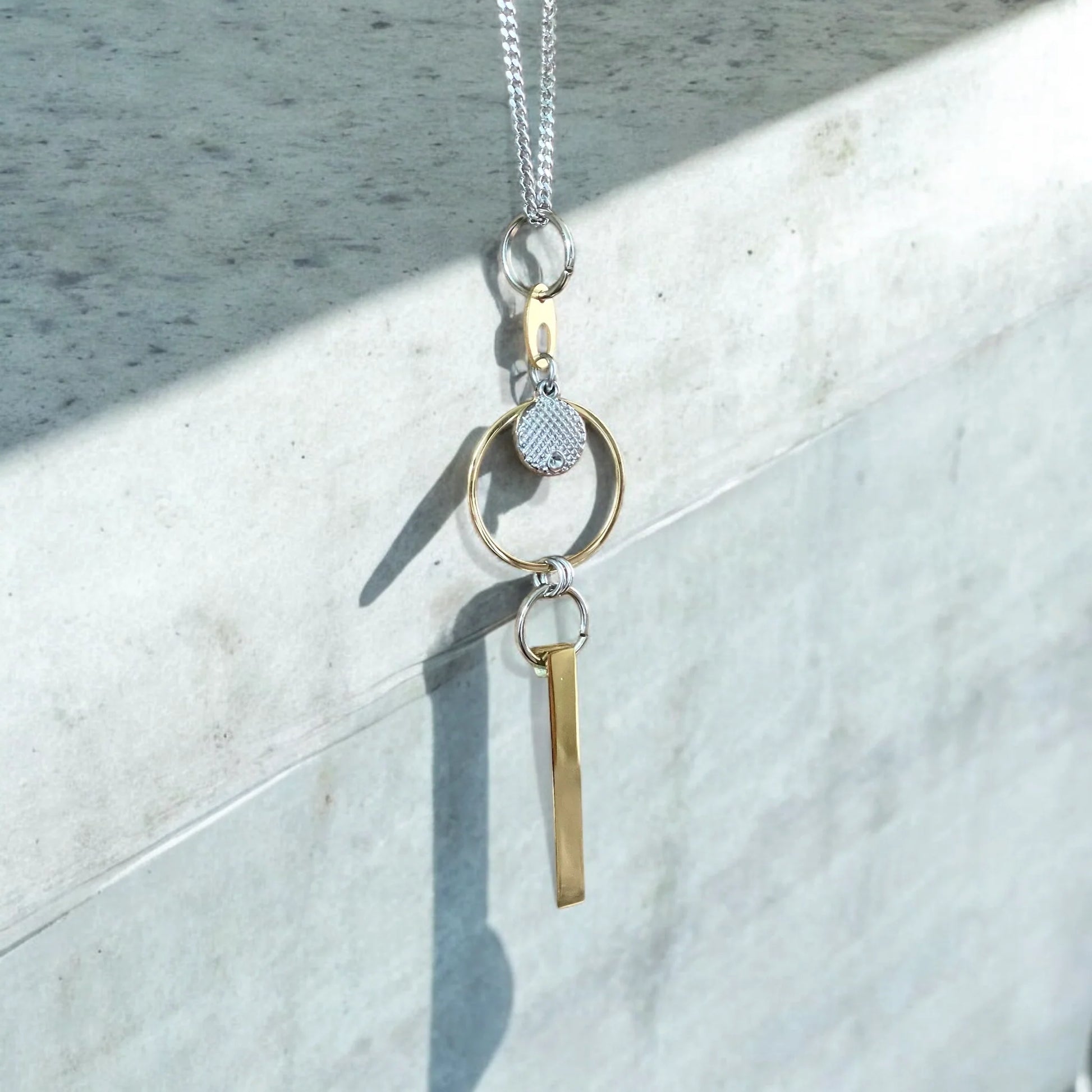 Collier long composé uniquement d’acier inoxydable.
