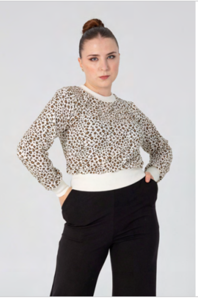 Soit en version noir et blanc, rib noir (le motif peut varier, plus ou moins de noir), ou léopard tons de crème et brun, rib crème