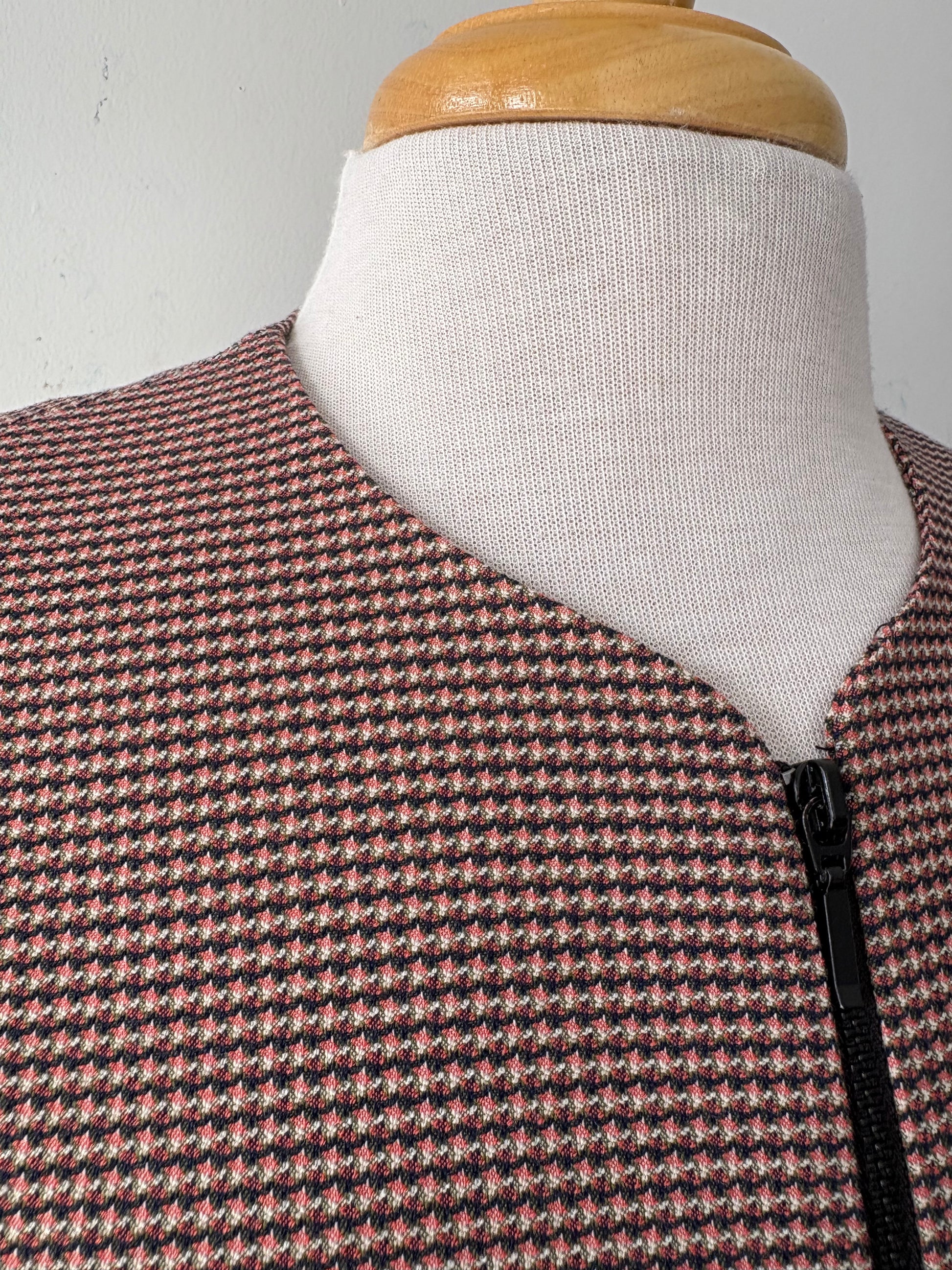 Veston court, motif rose, noir, fermeture éclair devant et poches