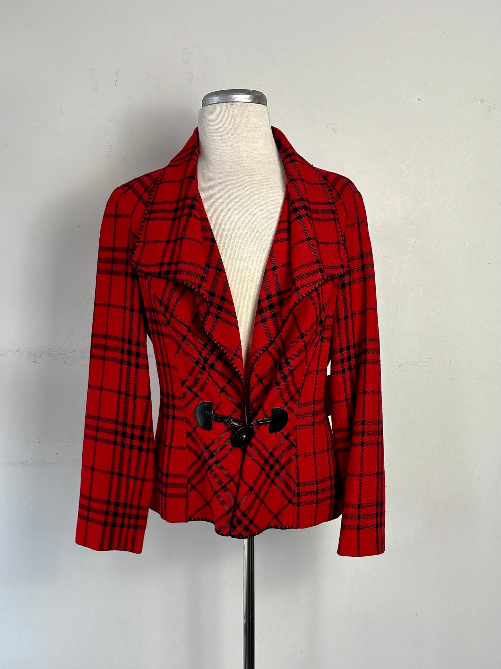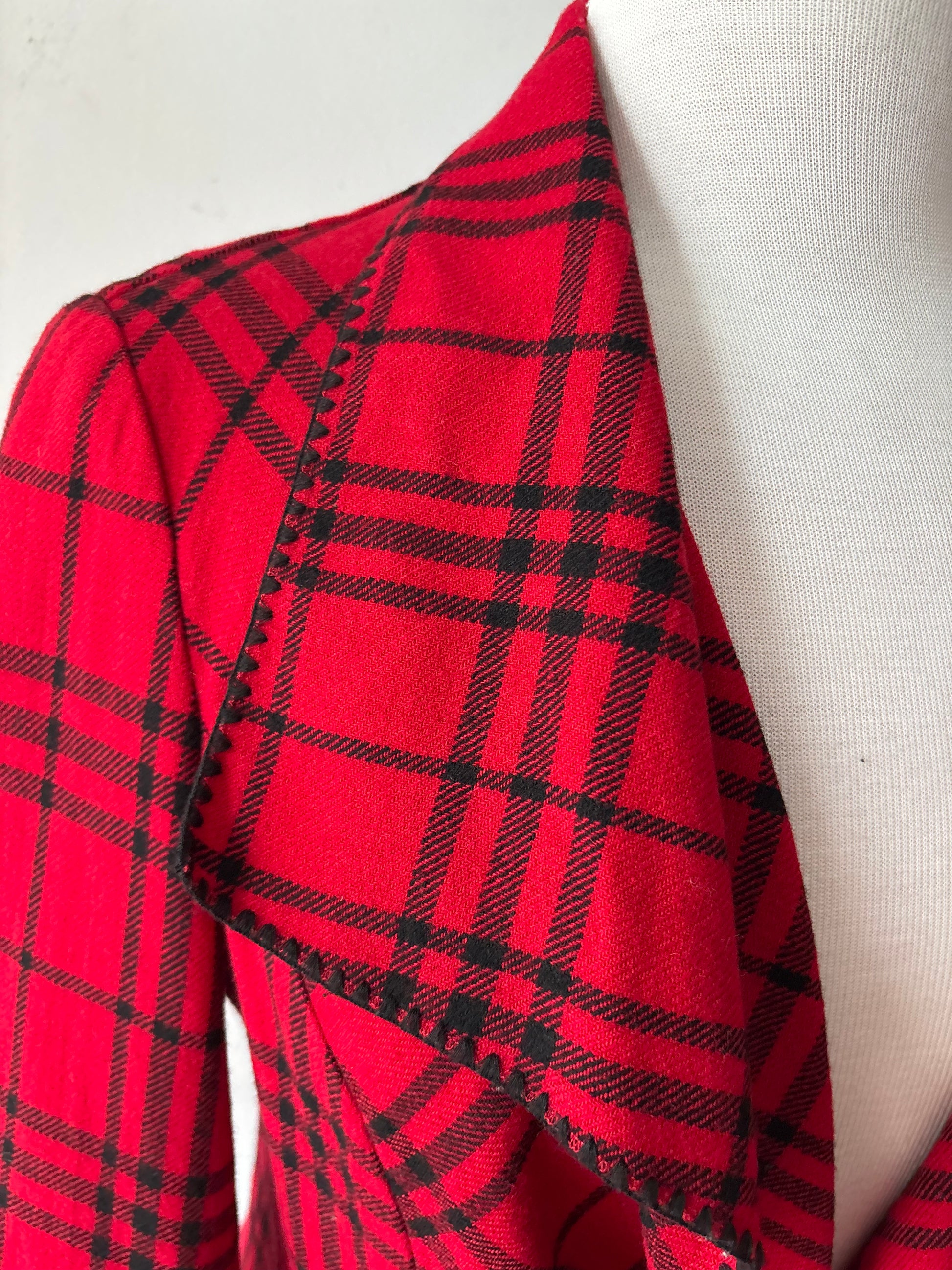 Veston léger carreau rouge, ligne noire. Laine 50 %