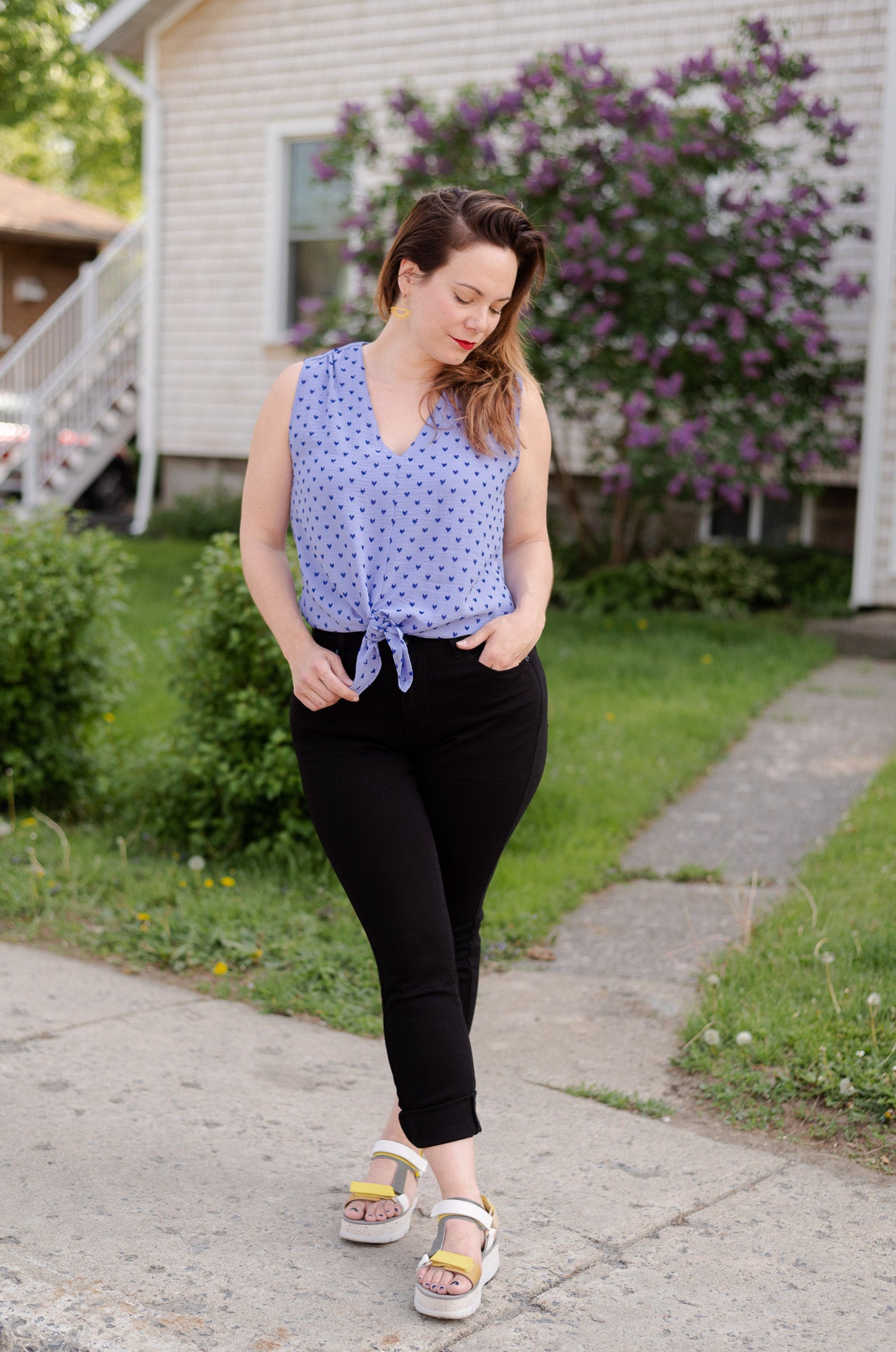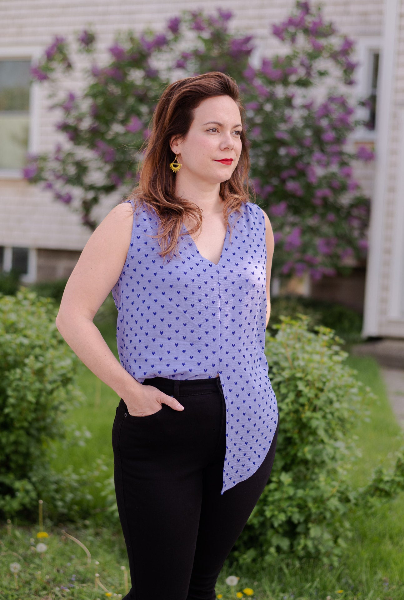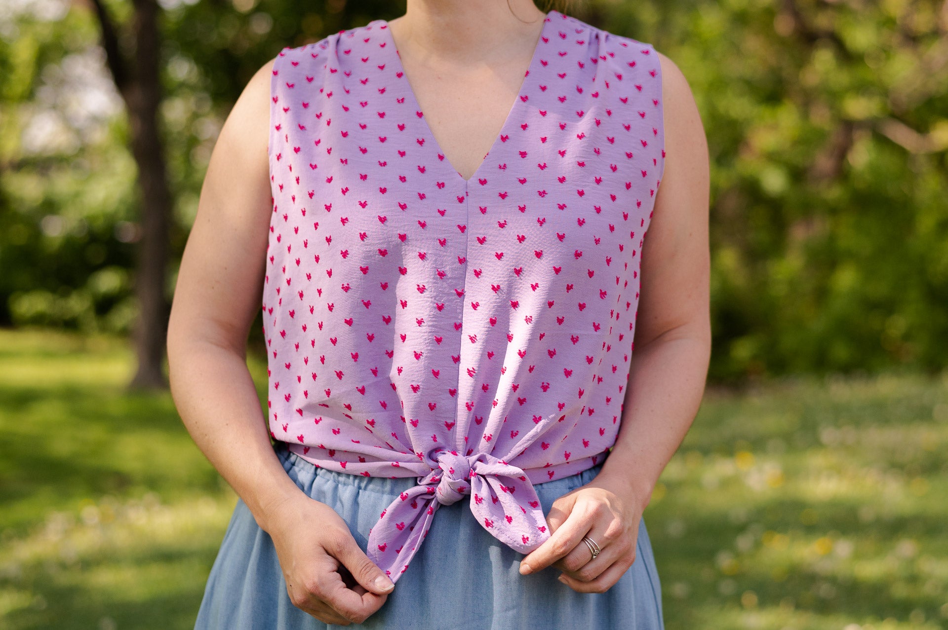 Chemisier sans manche avec encolure en "v" au devant.