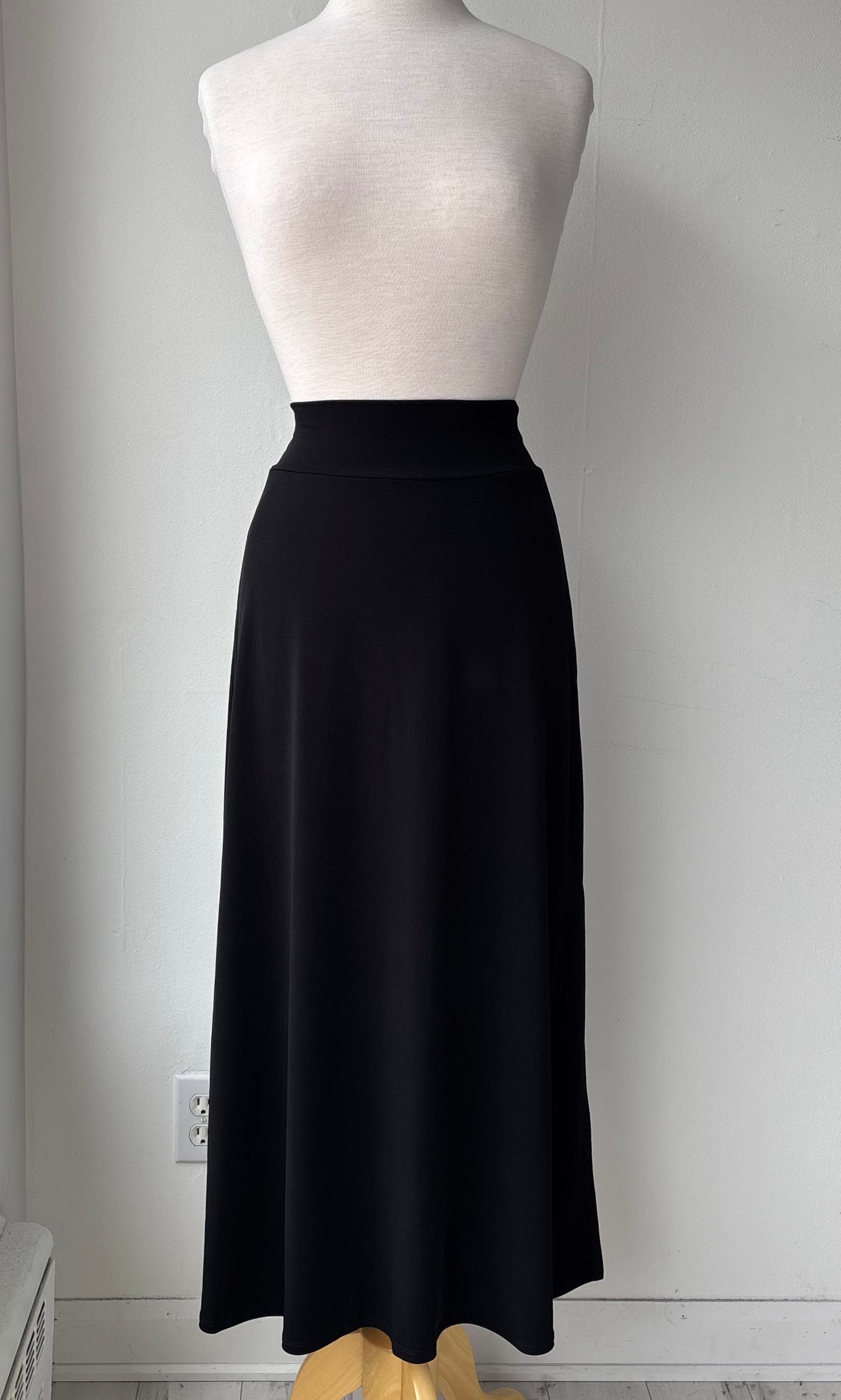 Jupe longue, légèrement évasée, fendue sur le côté gauche, infroissable avec une bande de taille élastique pour un confort impeccable. Elle se porte avec tout et se glisse facilement dans la valise pour voyager.