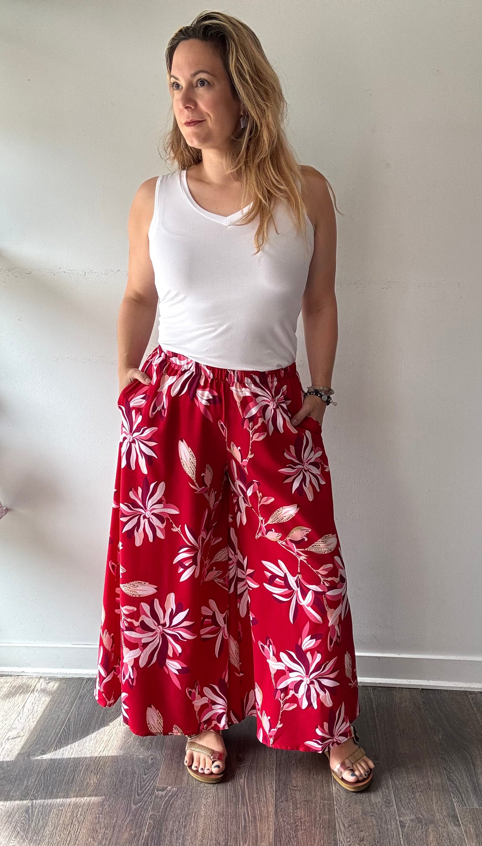 Cette jupe culotte est faite dans un tissu ultra léger, avec des poches sur les côtés et est longueur cheville.