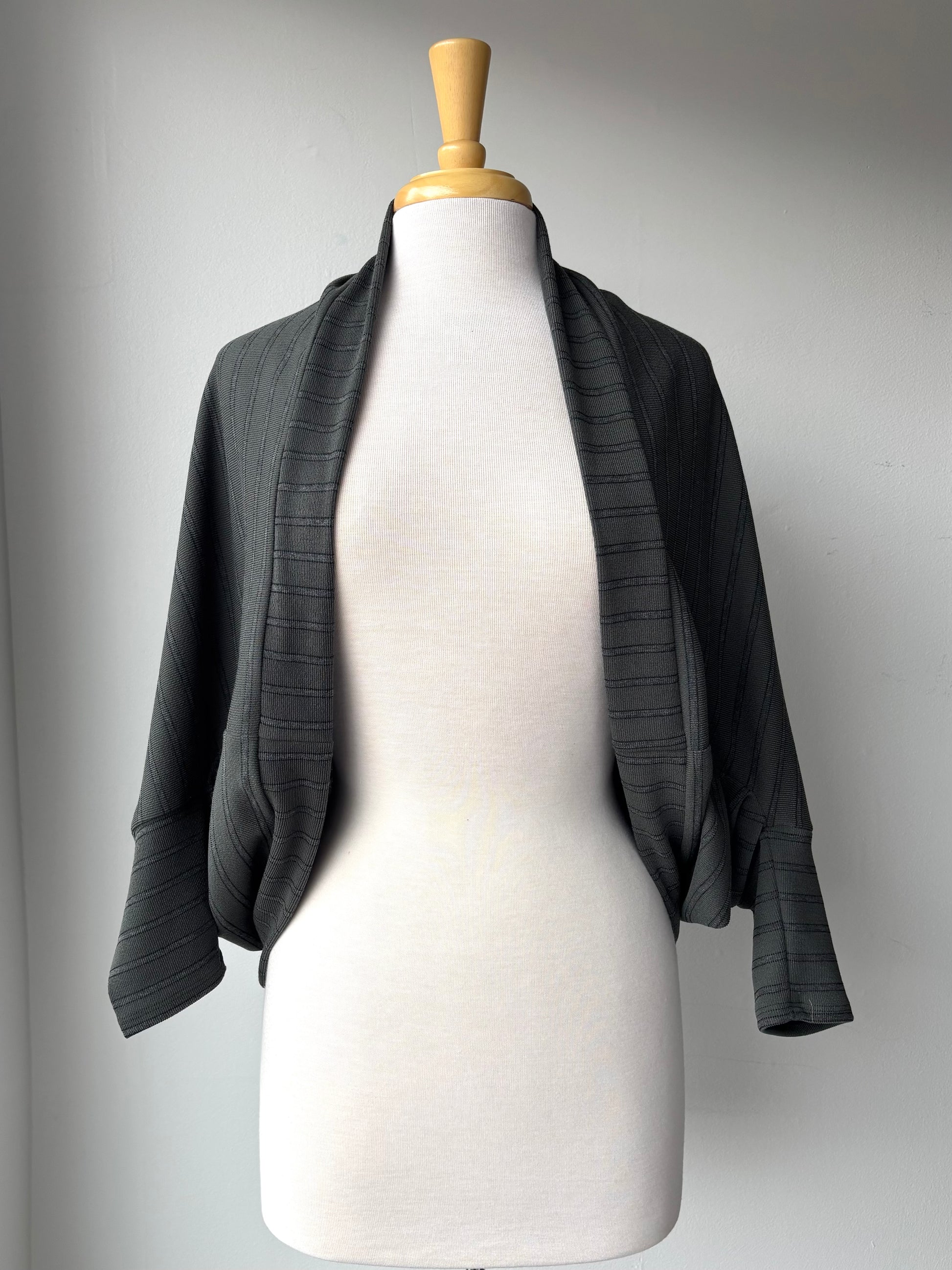 Veste "one size", style chauve-souris, en tricot rayé kaki.