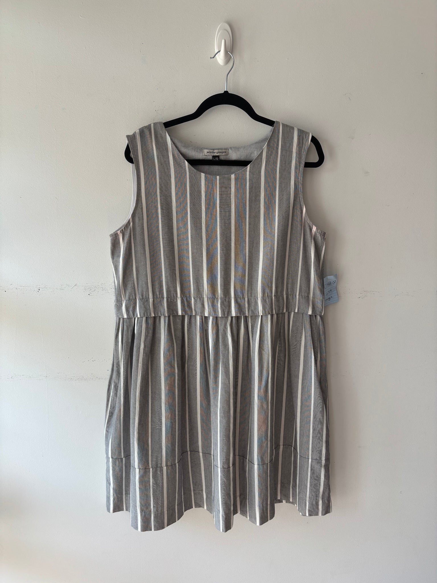 Robe grise/blanche, sans manche, lignée grise et blanche