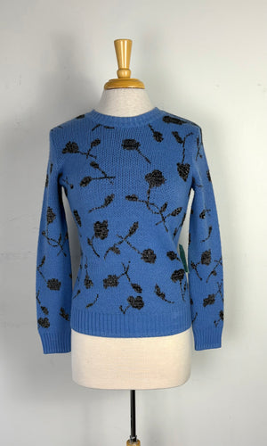 Chandail bleu fleurs lamé |PINK-273 (S)