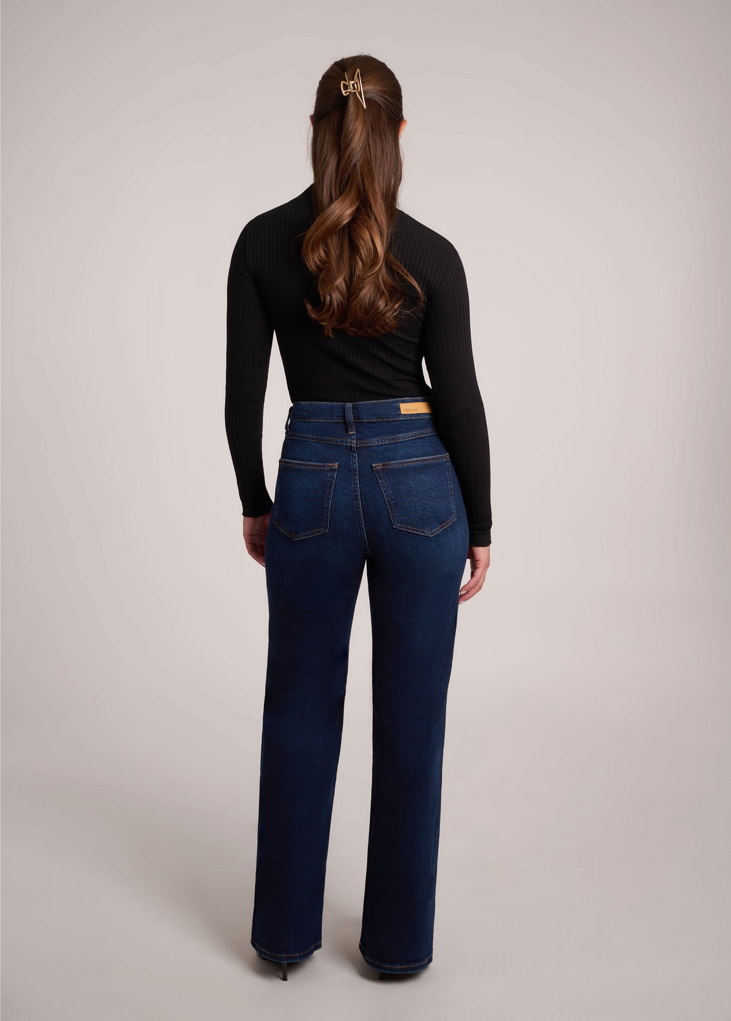 Voici Maia, le nouveau jeans à jambe large de la coupe Lily. C'est un jean délavé foncé et classique qui se marie à n'importe quel style. Conçu pour le confort et adapté à toutes les silhouettes