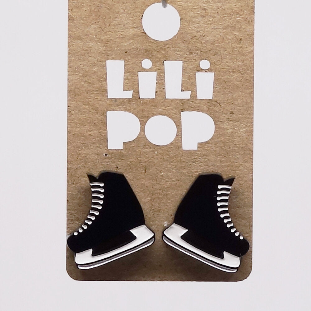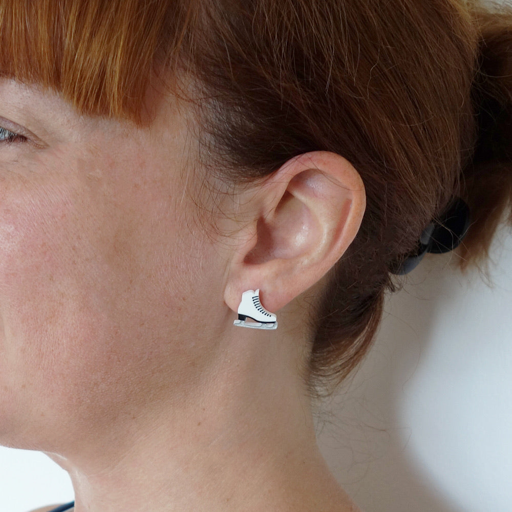 Boucles d’oreilles fabriquées à partir de plastique blanc ou noir récupéré, gravé et découpé au laser. Remplissage de peinture argent, noire et blanche.